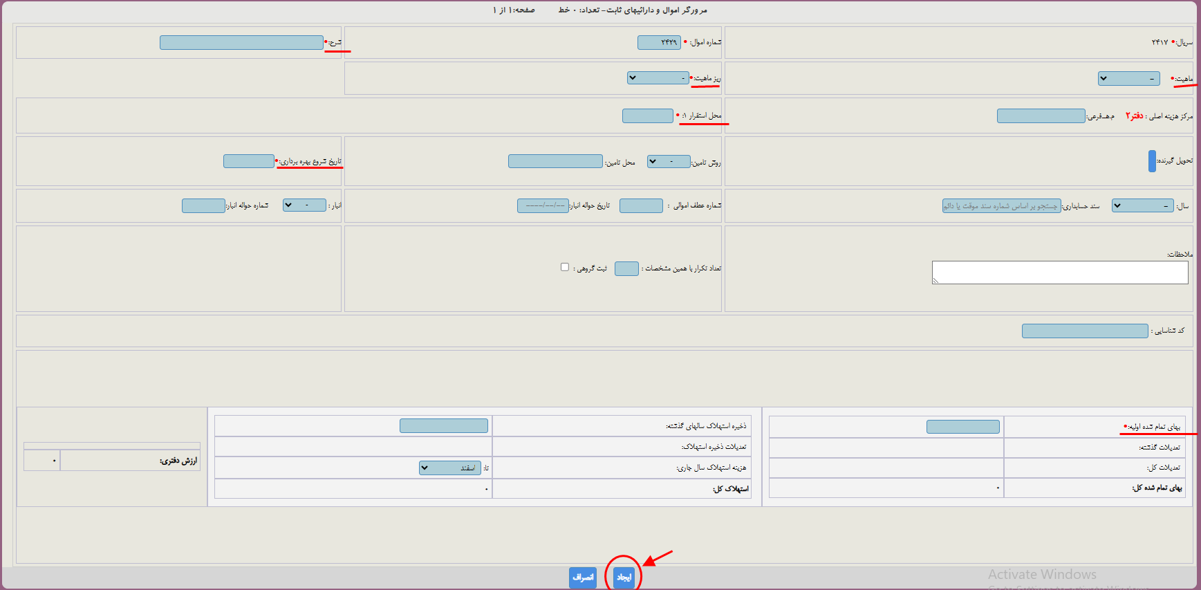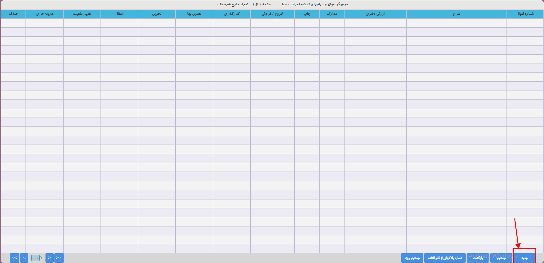در منو عملیات اموال-مرورگر اموال  وارد شوید . روی جدید پایین صفحه کلیک کنید