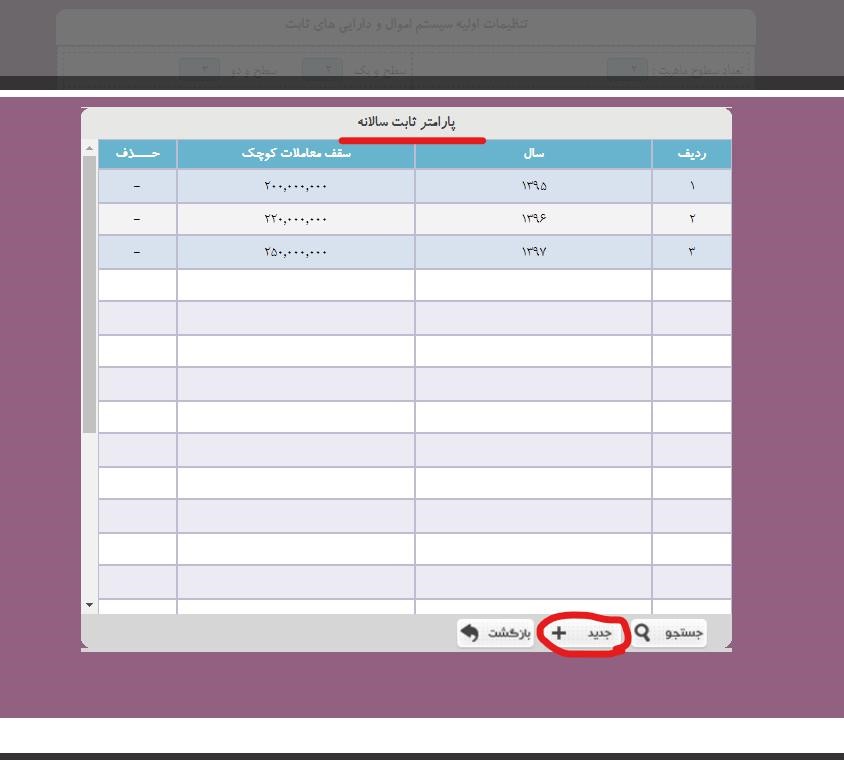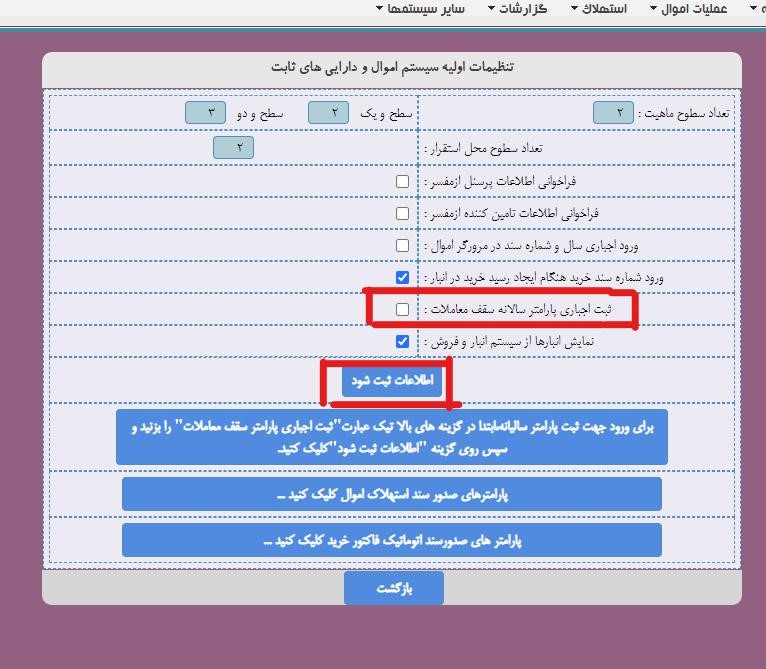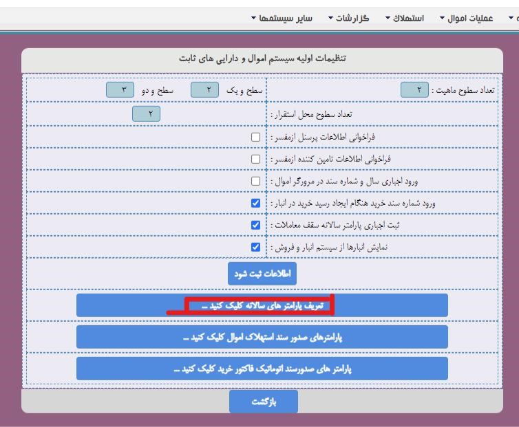 بعد در قسمت پایین صفحه روی “تعریف پارامترهای سالانه” کلیک کنید