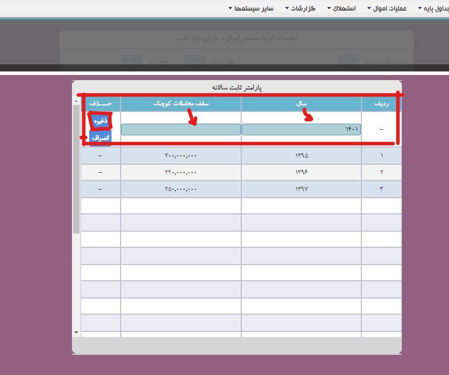 سال جاری را در ستون” سال “و مبلغ را درستون ” سقف معاملات کوچک ” وارد کنید و ذخیره را بزنید