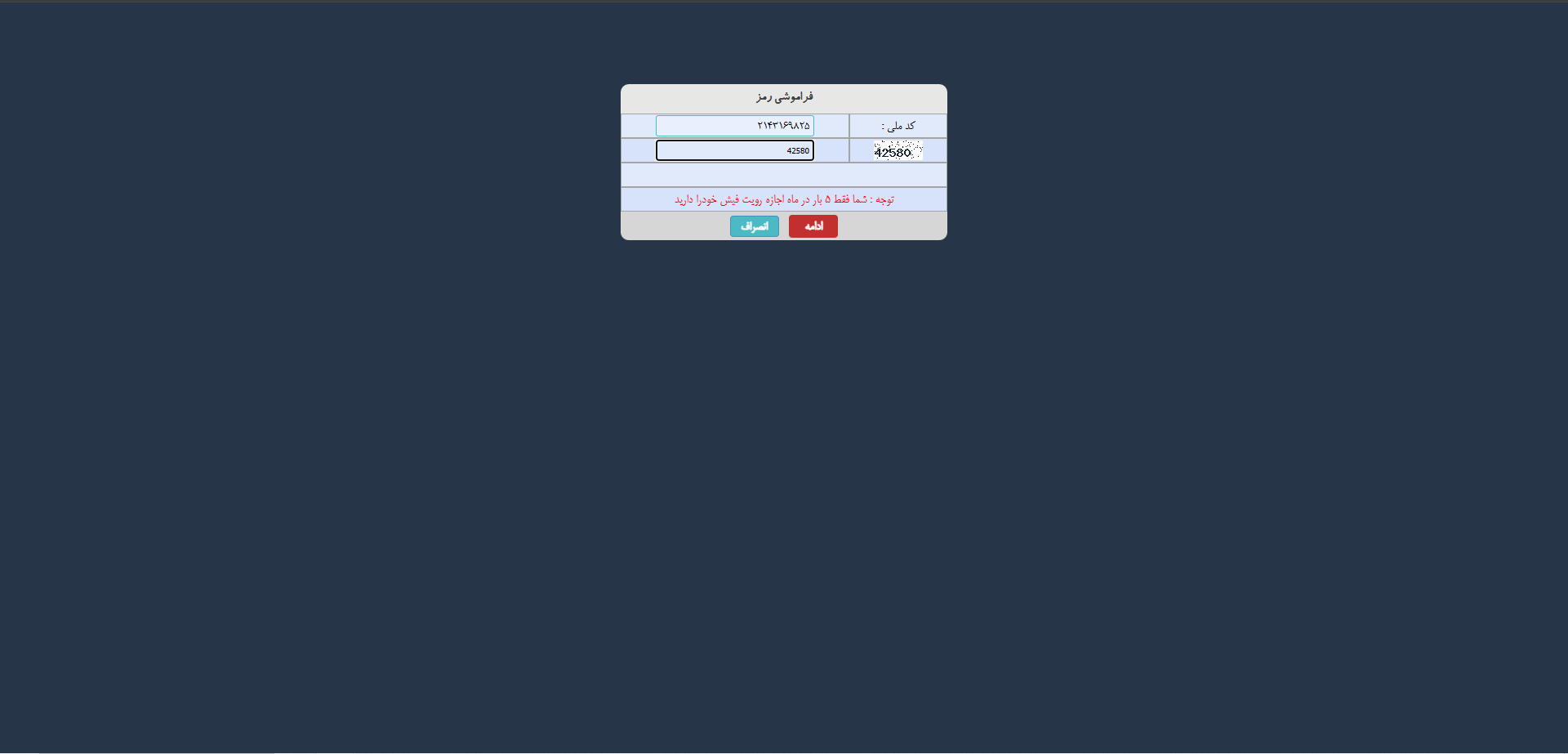 در صفحه ی روبرو کد ملی و کد امنیتی را وارد نمایید و منتظر دریافت پیامک بمانید
