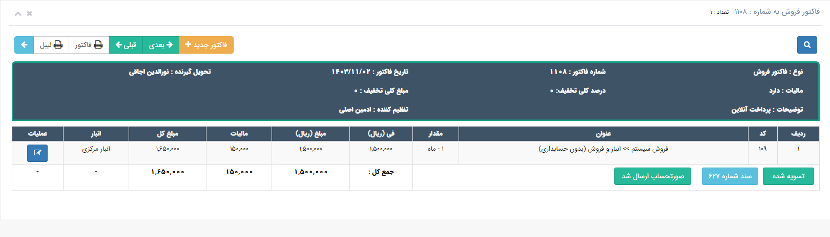 در صورت مشکلدار بودن صورت حساب نیز سیستم خطای صورت حساب را شناسایی و امکان تصحیح را به شما میدهد.