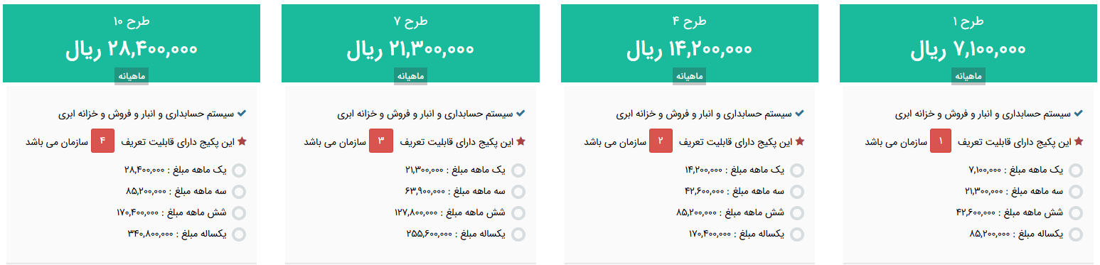 قیمتهای سیستم حسابداری آنلاین