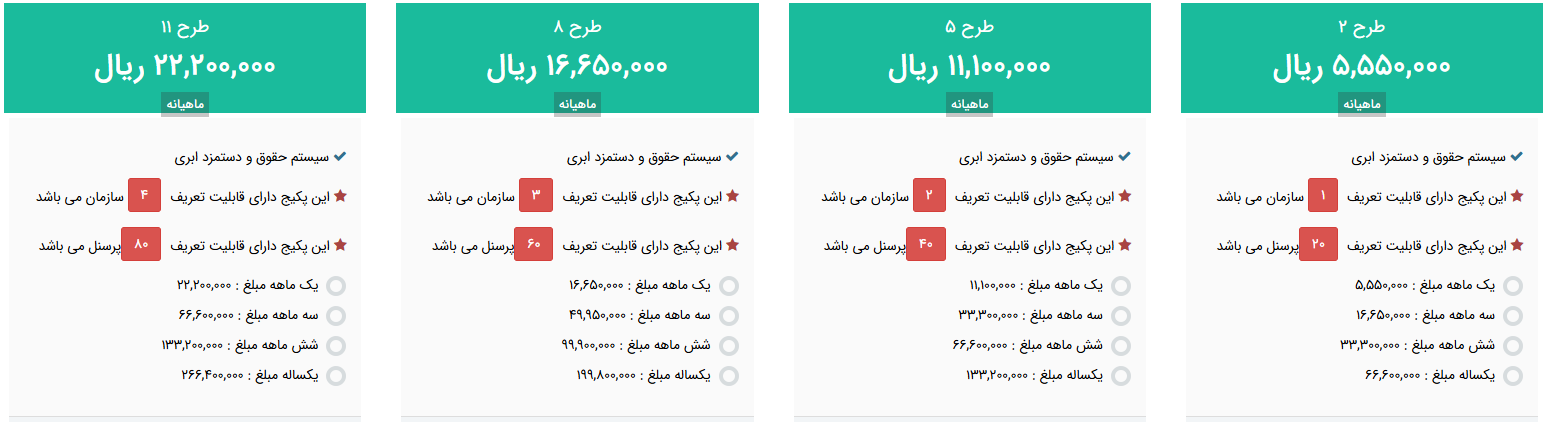 قیمتهای سیستم حقوق و دستمزد آنلاین
