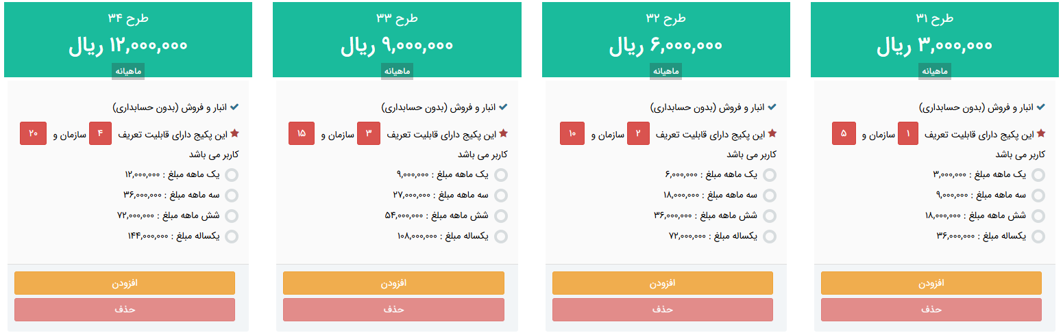 قیمتهای سیستم انبار و فروش آنلاین (بدون حسابداری)